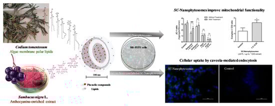 - Mendes, D.; Valentão, P.; Oliveira, M.M.; Andrade, P.; Videira, R.A. A Nanophytosomes Formulation Based on Elderberry Anthocyanins and Codium Lipids to Mitigate Mitochondrial Dysfunctions. Biomed. Pharmacother. 2021, 143, 112157–112169. [Google Scholar] [CrossRef] [PubMed]
