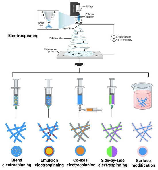 - Gao, C.; Zhang, L.; Wang, J.; Jin, M.; Tang, Q.; Chen, Z.; Cheng, Y.; Yang, R.; Zhao, G. Electrospun nanofibers promote wound healing: Theories, techniques, and perspectives. J. Mater. Chem. B 2021, 9, 3106–3130. [Google Scholar] [CrossRef]