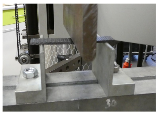 Test specimens of dimensions 80 × 15 × 2 mm were cut from each cured plate using a water jet to determine flexural properties. The following is a comparison of the individual curing cycles in terms of the evaluated flexural properties. The test was carried out according to the ISO 14 125 standard for three-point bending on a Zwick 1456 testing machine (Figure 3) [24].