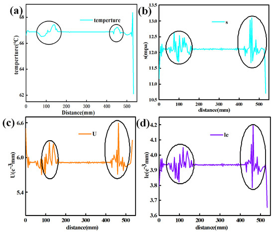 Temperature variations on the surface can result in the significant thermal expansion and contraction of the adhesive material due to excessive temperature differences, thereby affecting the performance of the bonding layer. In the curved regions of the interior component, stress concentration may lead to structural instability. Substantial displacement and strain can reduce the bonding layer’s strength and the final product’s overall appearance [32]. By integrating the sensor data analysis, manufacturers can enhance production efficiency, improve product quality, and address the challenges associated with automated encapsulation technology.