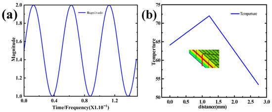 (a) Load temperature application amplitude curve; (b) temperature transfer diagram from the polyurethane skin to the mesh fabric.