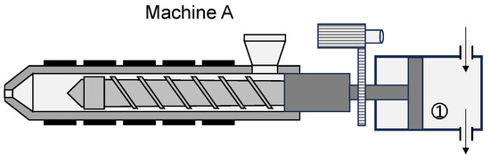 In contrast, machine B pressurizes both hydraulic chambers (number 1 and 2 shown in Figure 11) to adjust the position of the screw and is equipped with a position control system with a hydraulic accumulator.