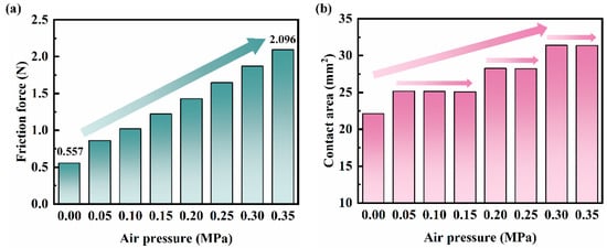 (a) The frictional force and (b) the contact area of the 0 d NBR seals under different loading air pressures.