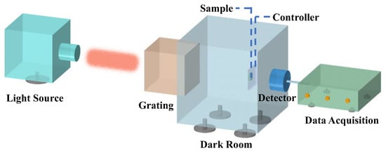 Optical performances of thermal and electrical modulation on two types of templated CLCs were characterized, respectively. Transmission spectra of the single-layer templated CLC covering the range from 400 nm to 1700 nm were measured using the system shown in Figure 4. In the experiment, unpolarized light from a tungsten bromine lamp was used as incident light. The temperature of samples was controlled using the hot stage, and an AC electric field was applied to samples with a function generator (AFG 3011, Tektronix, Beaverton, OR, USA). The optical response was detected using a data acquisition system (DCS300PA, Zolix, Beijing, China) connected to a computer. The transmittance was calculated as the ratio between detected light intensity with samples and that with an empty cell. Changes in transmission spectra induced by temperature and electric fields were also recorded on the system.