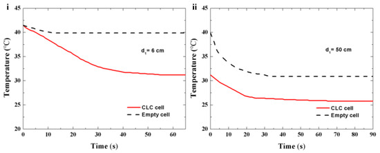 Temperature response curves of CLC cell and empty cell with d1 = 6 cm (i) and d1 = 50 cm (ii).
