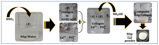 Schematic representation of HAp–collagen composite synthesis via the dissolution/precipitation method.