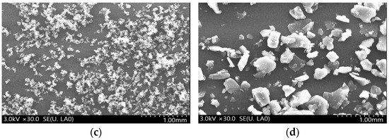 A field emission scanning electron microscope (FE-SEM, merlin compact, resolution 0.8 nm, Carl Zeiss, Oberkochen, Germany) was used to analyze the morphological characteristics of the mixed paint material according to the mass fraction of expandable graphite. The specifications of the equipment used to analyze the morphological characteristics according to the mass fraction of expandable graphite are as follows. The probe current is from 5 pA to 100 nA, and the acceleration voltage is from 0.02 V to 30 kV. The magnification is 12~200,000×. According to research results by Lee [23,24,25] and others, when adding inorganic materials to a polymer solution, thermal stability improves as the amount of inorganic materials added increases, but surface roughness improves due to agglomeration between inorganic materials. Accordingly, we attempted to analyze the correlation between the degree of particle aggregation and thermal properties by observing the surface of mixed paint materials according to the mass fraction of expandable graphite.