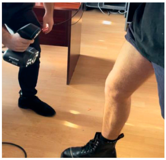 The knee orthosis mechanical 3D design process involved the utilization of a 3D model derived from the patient’s knee joint anatomy. Employing a Creaform Go Scan 50, a digital rendition of the knee and leg was meticulously crafted, presented in Figure 1, serving as the foundation for the orthotic design, tailored to exact specifications. Utilizing structured light technology, the 3D scanner meticulously captured a sequence of images, yielding a highly precise and detailed portrayal of the limb’s surface morphology. Employing a multifaceted approach, the limb underwent scanning from diverse vantage points and orientations to ensure comprehensive coverage and fidelity of the captured data. Subsequently, the acquired images underwent meticulous processing utilizing VXelements 2020 software, facilitating the generation of a three-dimensional representation of the patient’s limb. Notably, the Ver.1 software afforded capabilities for artifact removal and flaw rectification, thereby guaranteeing the attainment of a superior-quality rendition of the limb, integral to the subsequent orthotic design process.