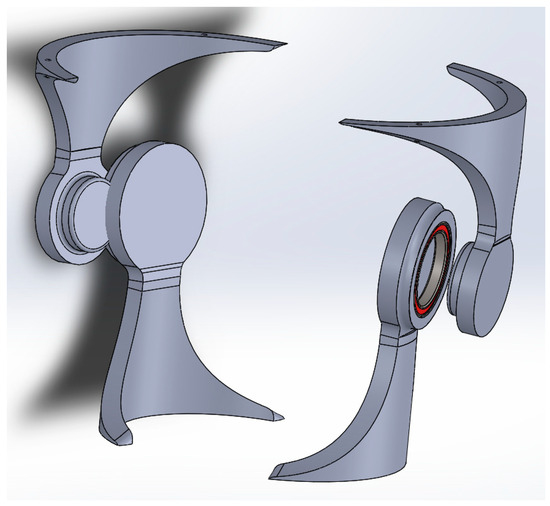 The aim of this research was to study the behavior of two of the components (see Figure 6) of the whole assembly of the orthosis which, in the authors’ opinion, were subject to the highest levels of stress and strain. The two components define the hinge of the orthosis. In this respect, the research focused on analyzing and determining, by comparison, the most effective strategy and the effectiveness offered by two materials readily available on the market.