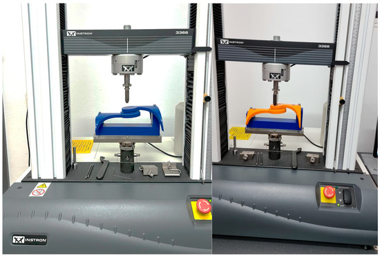 Instron® 3366 Series (Norwood, MA, USA)—mechanical testing equipment; rPET (left) and PLA (right).