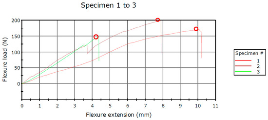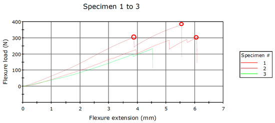 All the values of the strength of the “hinge” assembly obtained from the testing process of the whole batch of specimens are directly influenced by the printing process. A particularity of this unconventional process is the adhesion of the coating using polymer materials. Layer adhesion refers to the cohesive bonds formed between consecutive layers of material during the additive manufacturing process, ensuring the structural integrity and stability of the printed object [25,26,27,28].