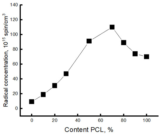 Changes in radical concentration from the composition of the PLA/PCL blend.