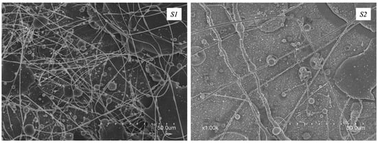 SEM micrographs of the electrospun fibers obtained from solutions S1 and S2.