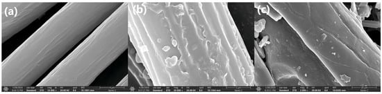 The SEM diagram of (a) feather, (b) F-g-GMA, and (c) SEM F-g-GMA-NMDG.