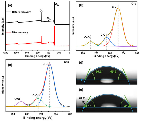 | Before recovery | C 1s | 285.13 | 3.01 | 1,404,777 | 72.22 ± 0.5 |
