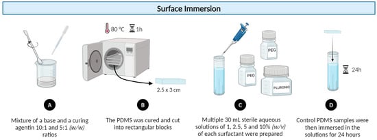 - The surfactant PEO at a concentration of 2.5% was identified as the most suitable option, taking into account the surface properties of PDMS such as the water contact angle (WCA), capillarity, and optical features;