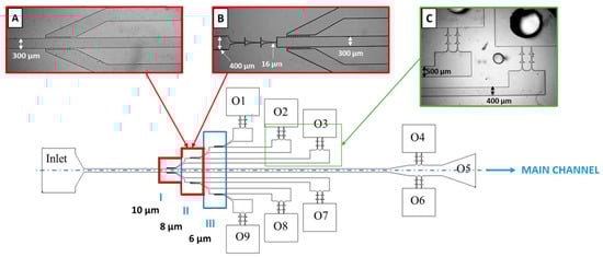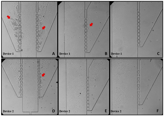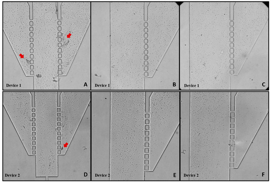 - Faustino, V.; Pinho, D.; Catarino, S.O.; Minas, G.; Lima, R.A. Geometry effect in multi-step crossflow microfluidic devices for red blood cells separation and deformability assessment. Biomed. Microdevices 2022, 24, 20. [Google Scholar] [CrossRef]