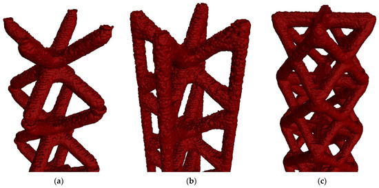 STL files obtained for each lattice typology in XCT measurements. (a) BCC; (b) BCCZ; (c) FCC.