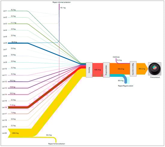 Mass balance for final DPP data of this case study as Sankey diagram [31].