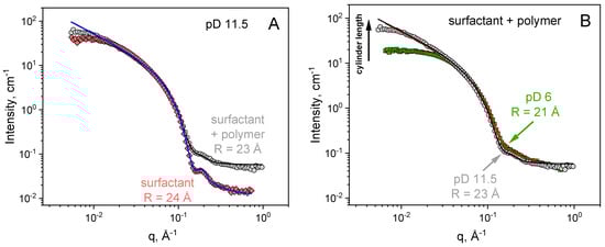 | pD | EHAC Concentration, mM | PVA Concentration, monomol/L | Radius of Cylinder R, Å | Radius Polydispersity ΔR/R |