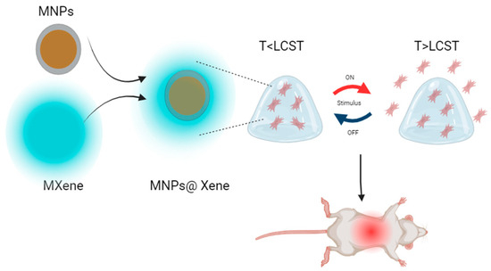 - Yang, X.; Zhang, C.; Deng, D.; Gu, Y.; Wang, H.; Zhong, Q. Multiple Stimuli-Responsive MXene-Based Hydrogel as Intelligent Drug Delivery Carriers for Deep Chronic Wound Healing. Small 2022, 18, 2104368. [Google Scholar] [CrossRef] [PubMed]