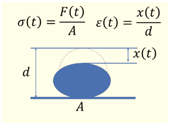 The force F(t) causes strain ε(t) and stress σ(t) of the rubber ball. When it is linearly deformed. The following Equation (5) is obtained where A(t) is the contact area between the ball and ground: