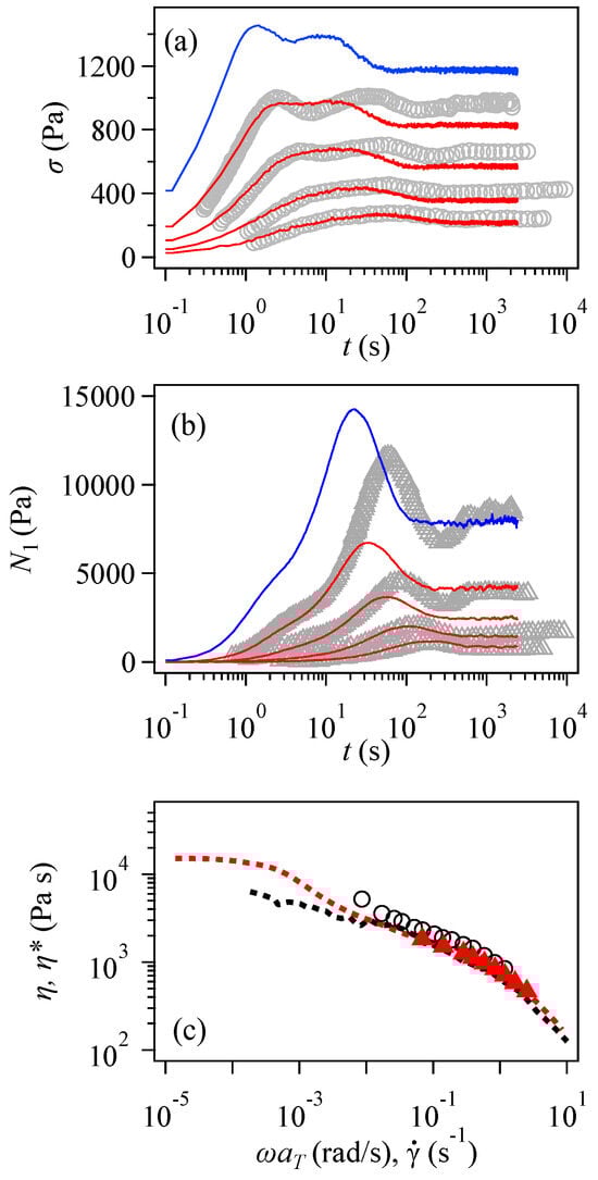 - Osaki, K.; Inoue, T.; Isomura, T. Stress Overshoot of Polymer Solutions at High Rates of Shear. J. Polym. Sci. B Polym. Phys. 2000, 38, 1917–1925. [Google Scholar] [CrossRef]