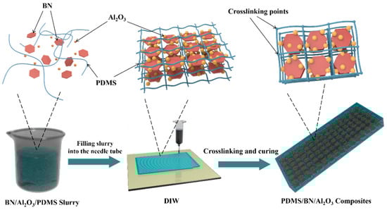 Schematic of the DIW ink preparation process for BN/Al2O3/PDMS composites.