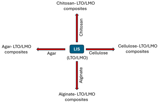 Schematic representation of the organic (biopolymer)–inorganic (LIS) composite materials captured in the review.