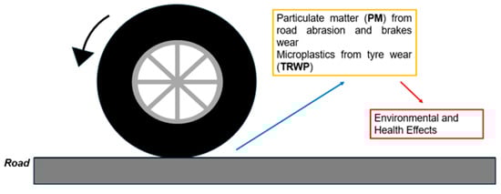 - Giechaskiel, B.; Grigoratos, T.; Mathissen, M.; Quik, J.; Tromp, P.; Gustafsson, M.; Franco, V.; Dilara, P. Contribution of Road Vehicle Tyre Wear to Microplastics and Ambient Air Pollution. Sustainability 2024, 16, 522. [Google Scholar] [CrossRef]