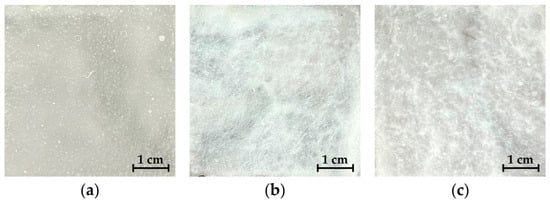 The bacterial nanocellulose was obtained using the process described by Lavrič et al. [] from the mother of vinegar. The mother of vinegar was produced using the classical (static) process of apple vinegar production. The BNC was washed and cut into rounds, heated to 40 °C, continuously stirred for 40 min in 50% ethanol (Pharmachem), rinsed, and again heated and stirred at 40 °C in 0.1 M NaOH for 40 min. The mixture was then homogenized (Kinematica Polytron PT45/80) for 1 min at 7000 revolutions per minute (RPM). Additional treatment in NaOH under the same conditions was applied again, further reducing the number of impurities in the BNC sample after the treated sample was filtered and continuously filtered, resulting in a thin plate of BNC [,].