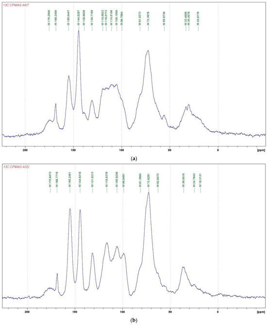 Comparison of 13C NMR spectra of ANT (a) and ASS (b) tannin extracts.