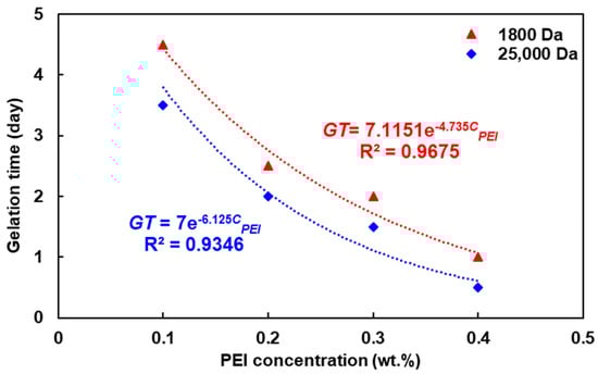 - Al-Muntasheri, G.A.; Nasr-El-Din, H.A.; Al-Noaimi, K.R.; Zitha, P.L.J. A Study of Polyacrylamide-Based Gels Crosslinked With Polyethyleneimine. SPE J. 2009, 14, 245–251. [Google Scholar] [CrossRef]