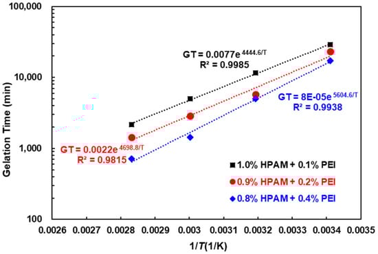 - Al-Muntasheri, G.A.; Nasr-El-Din, H.A.; Zitha, P.L.J. Gelation Kinetics and Performance Evaluation of an Organically Crosslinked Gel at High Temperature and Pressure. SPE J. 2008, 13, 337–345. [Google Scholar] [CrossRef]