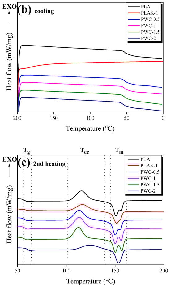 | Sample | 1st Tm (°C) | 2nd Tm (°C) | ΔHm (J/g) | 1st Tcc (°C) | 2nd Tcc (°C) | Xc (%) |