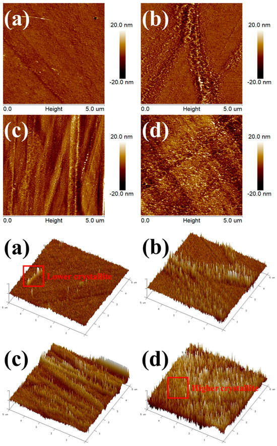 - Li, H.; Huneault, M.A. Effect of nucleation and plasticization on the crystallization of poly(lactic acid). Polymer 2007, 48, 6855–6866. [Google Scholar] [CrossRef]