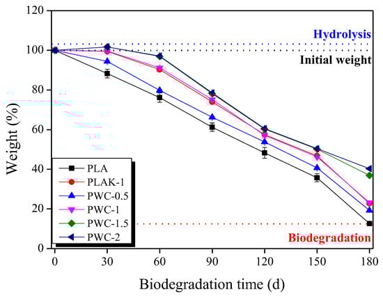 - Boonluksiri, Y.; Prapagdee, B.; Sombatsompop, N. Promotion of polylactic acid biodegradation by a combined addition of PLA-degrading bacterium and nitrogen source under submerged and soil burial conditions. Polym. Degrad. Stab. 2021, 188, 109562. [Google Scholar] [CrossRef]