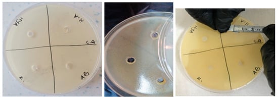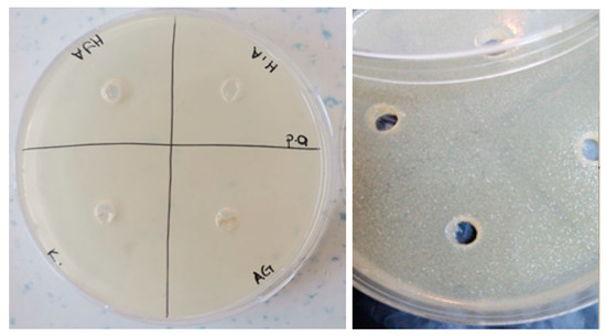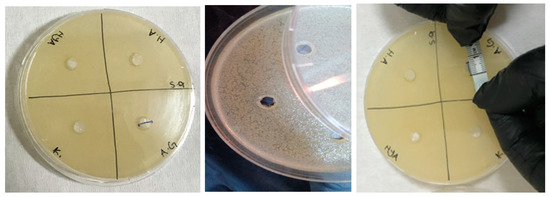 When studies with hyaluronic acid (HYA) are examined, it is seen that the prepared composites can prevent bacterial adhesion to the substrate depending on the concentration and are active when treated as a pure substance [61]. In addition, the bacteriostatic effects of hyaluronic acid on oral and non-oral microorganisms have been investigated in dental surgery, and it has been observed that prepared hyaluronic-acid-containing gels and solutions show bacteriostatic effects [62].