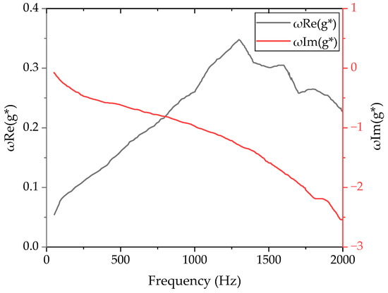 Figure 4. Real part (ωRe(g*)) and imaginary part (ωIm(g*)) of the rubber’s viscoelastic characteristics.