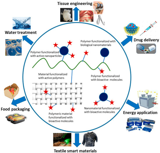 - EL-Ghoul, Y.; Alminderej, F.M.; Alsubaie, F.M.; Alrasheed, R.; Almousa, N.H. Recent Advances in Functional Polymer Materials for Energy, Water, and Biomedical Applications: A Review. Polymers 2021, 13, 4327. [Google Scholar] [CrossRef] [PubMed]