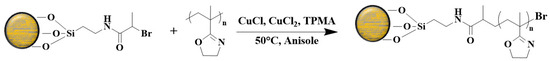 - Raus, V.; Hološ, A.; Kronek, J.; Mosnáček, J. Well-Defined Linear and Grafted Poly(2-Isopropenyl-2-Oxazoline)s Prepared via Copper-Mediated Reversible-Deactivation Radical Polymerization Methods. Macromolecules 2020, 53, 2077–2087. [Google Scholar] [CrossRef]