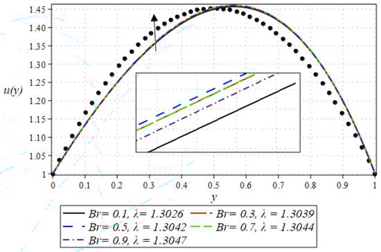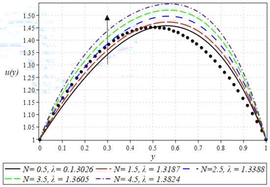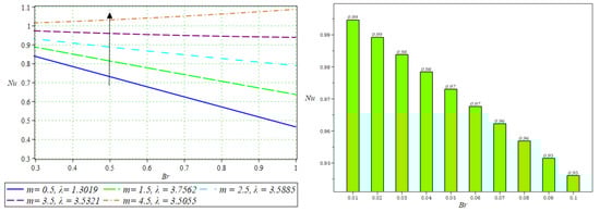 - The velocity profile has a decreasing trend for the increasing values of and , whereas the opposite trend was witnessed for increasing values of and .
