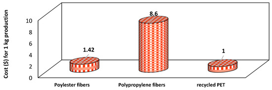 Recycled PET fibers have numerous applications in geotechnical engineering, contributing to both environmental sustainability and improved performance [65,66]. One significant application of PET fibers classified as geogrids is soil stabilization, where these fibers are incorporated into the soil to enhance its strength and resistance against erosion, settlement, and shear forces. They can also be used in retaining walls and erosion control systems, providing structural support and preventing soil erosion [67]. Furthermore, they find utility in land reinforcement, strengthening weak areas, and improving load-bearing capacity in infrastructure projects [68]. Utilizing recycled PET fibers in geotechnical engineering helps to reduce plastic waste and embrace a more sustainable approach to construction.