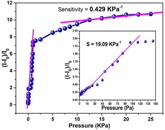 The sensitivity response of the sensor of fibrous mats under applied pressure.