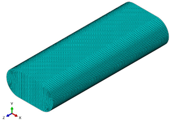 The model uses the printing unit microsegment as the analysis object, and the structure is shown in Figure 5. The model length is 0.5 mm × 0.2 mm × 0.1 mm, and it contains 87,567 nodes and 81,400 units.