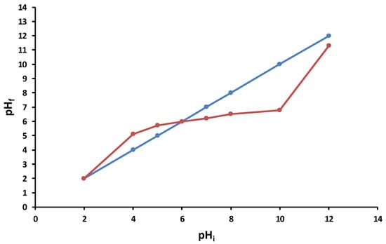 Point of zero charge determination. In order to determine the point of zero charge (pHPZC) value, 0.4 g of biosorbent was mixed for 24 h on an orbital shaker using an SK-O180-S Digital Orbital Shaker device (DLAB SCIENTIFIC Company, LTD., Beijing, China) at room temperature with 20 mL of 0.1 M NaCl solutions with an initial pH of 2 to 12. A portable pH meter (Dostmann KLH9.1, 0–14 pH, Carl Roth, Germany) was utilized for initial (pHi) and final (pHf) pH measurements. In the following step, a plot was generated using the collected data.