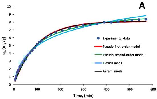 Adsorption kinetics determines the adsorption rate, which states the time necessary to achieve equilibrium in the adsorption process and is an important consideration in process development and adsorption system design. Kinetic models can help to understand the adsorption pathways and the likely mechanism that occurs [].
