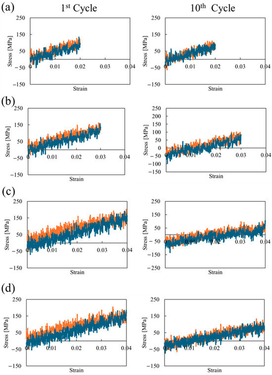 - The damage at the nanoscale initiates and propagates through the following process: Initially, under cyclic loading, covalent bonds align with the applied load direction. Subsequently, tensioned covalent bonds break, causing the surrounding bonds to fracture sequentially, resulting in the formation of significant voids. Consequently, stress–strain curves display non-linear and inelastic behavior.