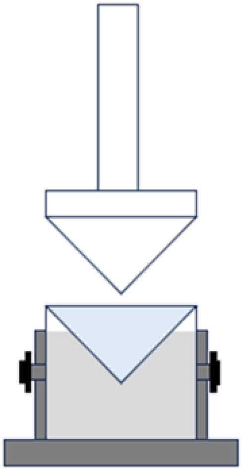 The gel was placed in a special container (Figure 2), and the test was conducted according to the set parameters. Analyses were performed in triplicate, and the average values were calculated. The firmness meanings of back extrusion and spreadability tests were found to be varied by different probes.