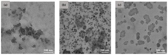 Transmission electron microscopy (TEM) micrographs were obtained using a Hitachi High-Tech HT7700 transmission electron microscope (Hitachi High Technologies America, Inc., Schaumburg, IL, 60173 USA) operating at a 100 kV accelerating voltage in high-contrast mode. The NP samples were placed on carbon-coated copper grids with a mesh size of 300 and dried at room temperature, and then the images were recorded.